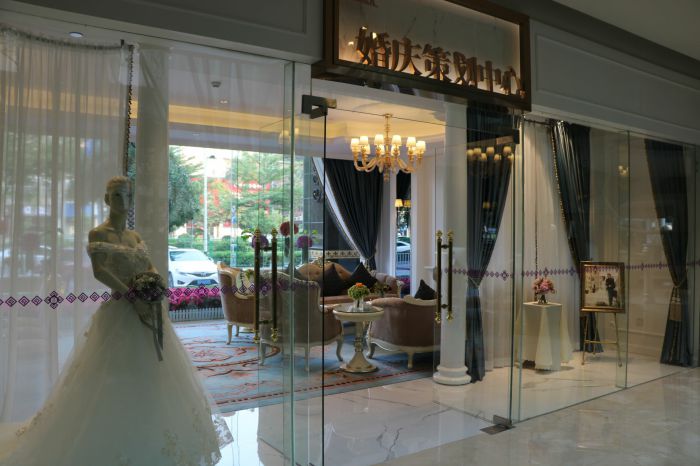 揭陽一家戶外西式婚禮殿堂,擁有西式婚禮慶典布局、五星級的私人訂制的貼心婚宴服務及大氣的婚禮殿堂。環境優美、裝飾高雅、婚禮殿堂精選桂花搭配造型紅楓,引進新設計理念,十多種不同綠植融合,綠化斥巨資打造而成;俯瞰榕江河,180°臨江美景的婚禮場地,為您定格浪漫的婚禮瞬間。